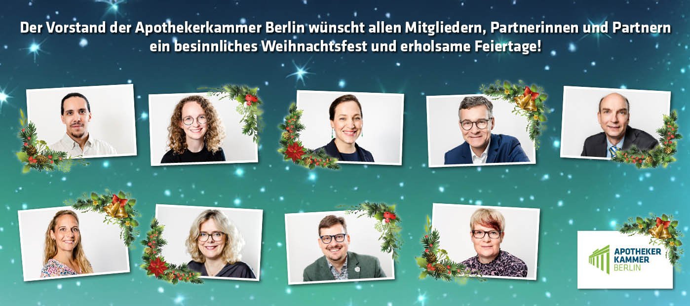 Der Vorstand und das Team der Apothekerkammer Berlin wünscht frohe Weihnachten und besinnliche Festtage.